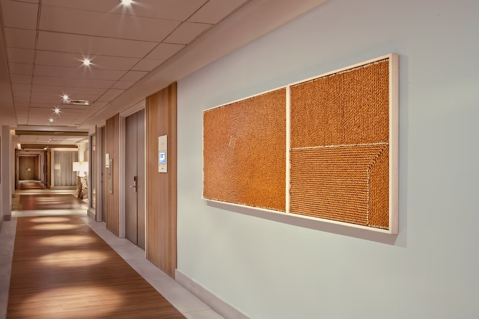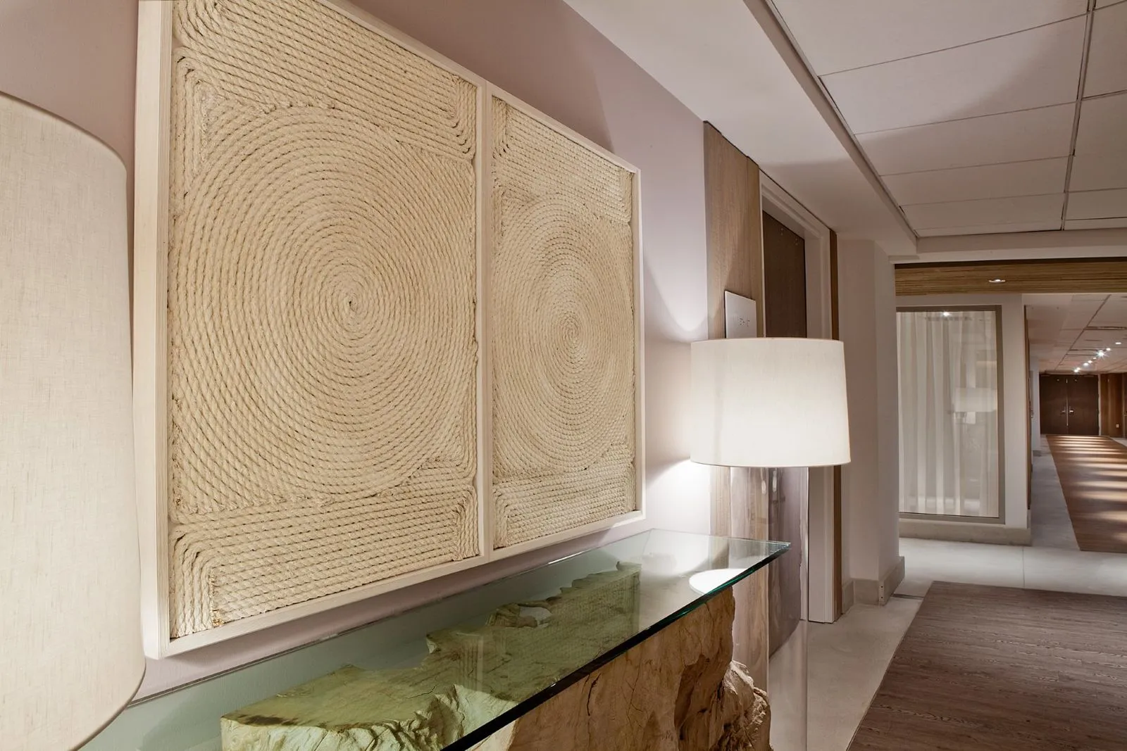 New York City design boutique, Meyer Davis Studio Inc., designed the interiors for the luxury beachfront hotel near the Miami Beach architectural district. The airy and inviting rooms draw inspiration from the hotel’s oceanside location, achieving sophistication in the artful use of minimal decor and beach-inspired accents. The art collection incorporates works constructed from natural materials like sand, wood, and rope. Fabrications by artisan groups work together to transform the space and accentuate 1 Hotel Miami’s oceanic atmosphere.