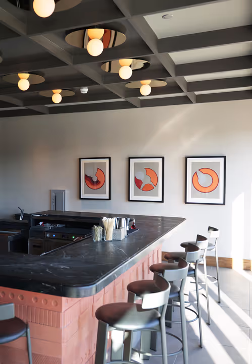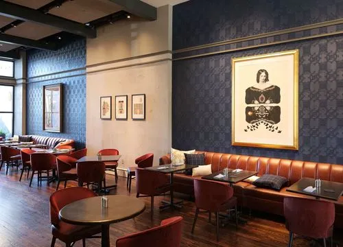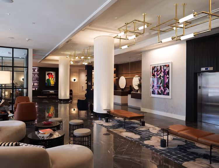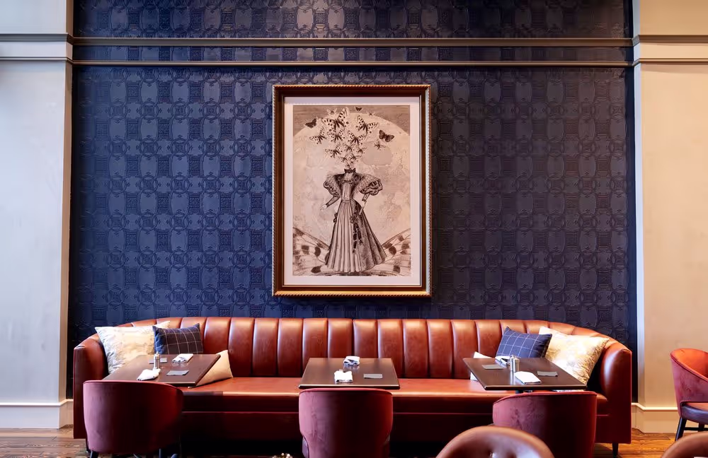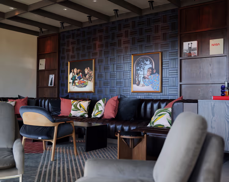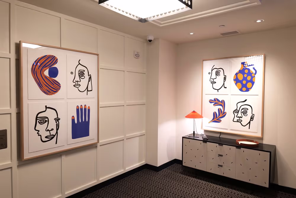 Gestural and illustrative abstract works and vintage prints add dimension, eccentricity, and texture to the visual narrative that marries southern charm with references to outer space, throughout the guest rooms, suites, and public areas.