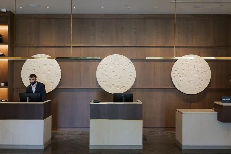 Located in Huntsville’s Twickenham district on the historic site of the former Huntsville Hotel, 106 Jefferson Hotel is a modern space that honors its storied past. Huntsville, Alabama was known as a cotton town until the government established Redstone Arsenal, which was later chosen as the site for U.S. missile research program, propelling the sleepy town into the international space race. From custom paintings of Able & Baker, a pair of monkeys sent to space in 1959, to a graphic reinterpretation of the classic silent film ‘A Trip to the Moon,’ visual references to the cosmos and various representations of outer space in pop culture and history are present throughout the hotel’s art collection.
