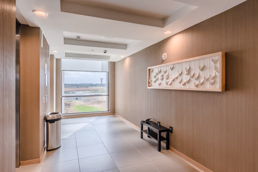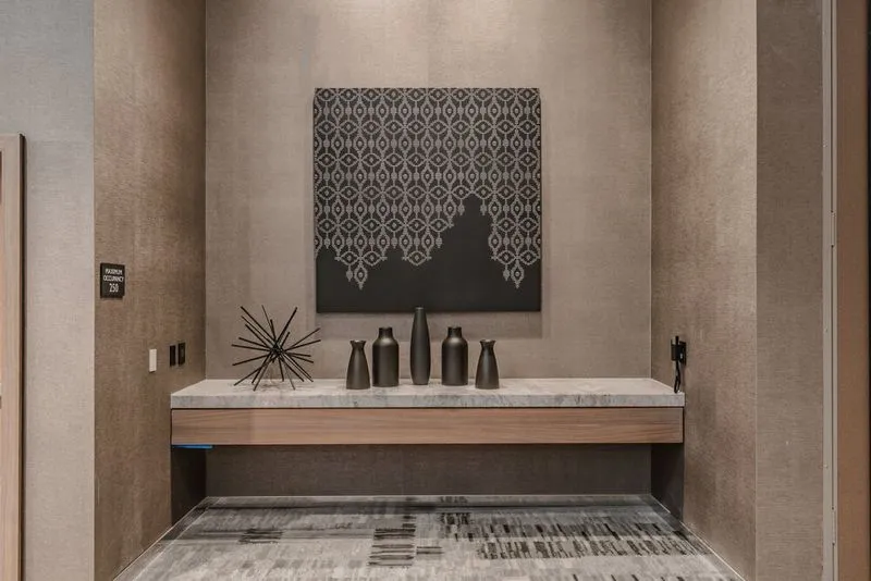 Dallas based firm, Duncan Miller Ullman Design, teamed up with Indiewalls to develop an art collection for the new AC Hotel in Frisco, TX. Our main design focus was blending AC's signature organic aesthetic with rugged Texan tenacity. Indiewalls worked with several talented artists to incorporate local elements into the art program, including a topographically-inspired leather artwork and custom flowing artworks inspired by the rivers surrounding the Dallas neighborhood.