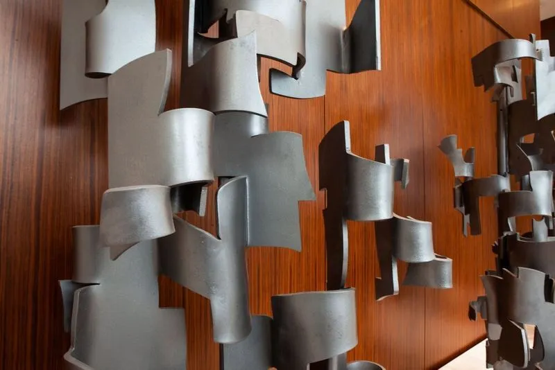 Indiewalls curated an international collection of sculpture and mixed media works, including many large scale installations commissioned specifically for the hotel. The art collection accents the modern European interiors, filling voids in the architecture while accompanying the hotel guest through their journey in and around the hotel. Powerful gestural strokes and strong geometry imbue a calm but ever-pulsing energy through the public spaces, while sharp-lined abstract photography bring extra intrigue into the 300 guest rooms.