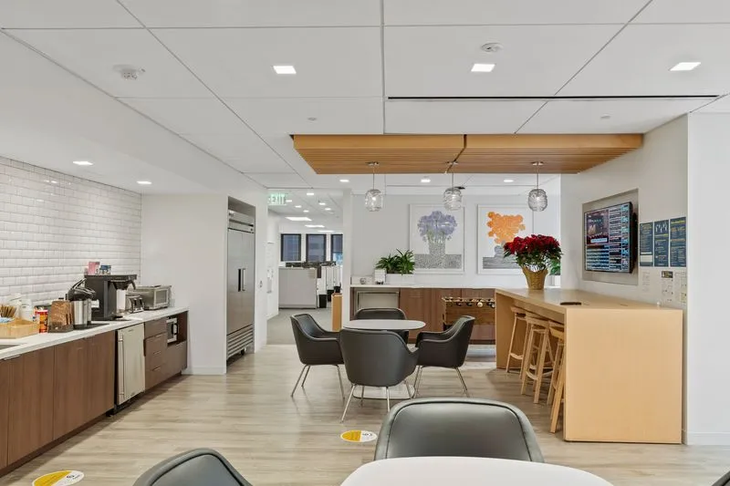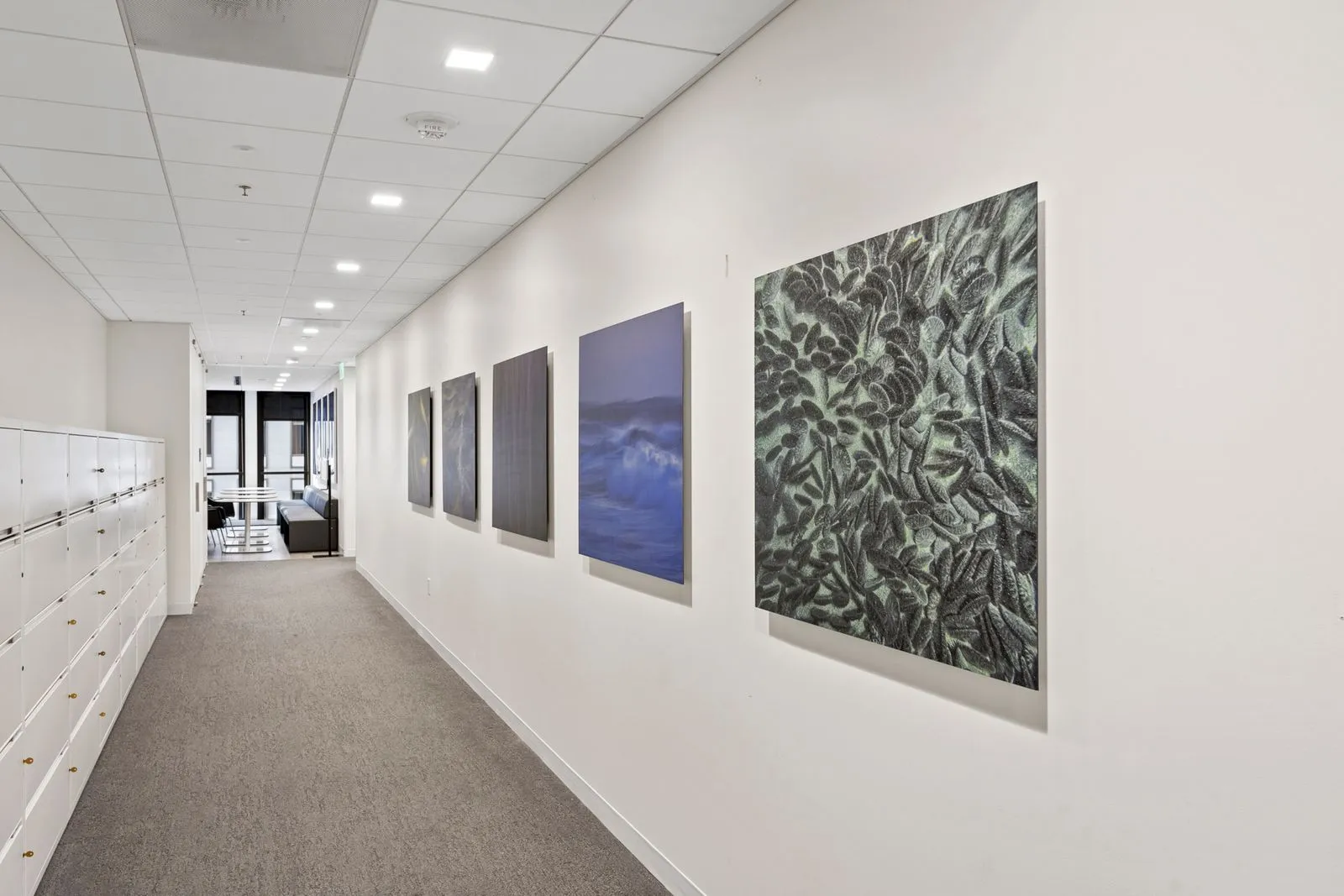 Allspring Global's San Francisco office showcases a vibrant collection from local artists, capturing the city's essence. Diane Wang's "Zephyr" blends natural and urban elements, reflecting the city's landscape. Scott Idleman's "Molecular Astronomy" illustrates the interconnectedness within city life. Joanne Fox's "Find Me in The Kitchen and Kehoe" portrays resilience, echoing the city's dynamic nature. This collection offers a striking visual story, imbuing Allspring Global's workspace with San Francisco's spirit.