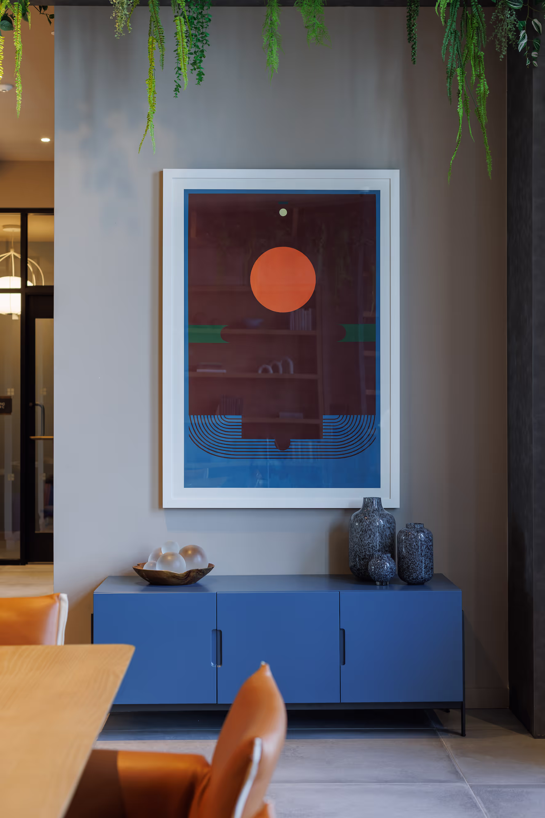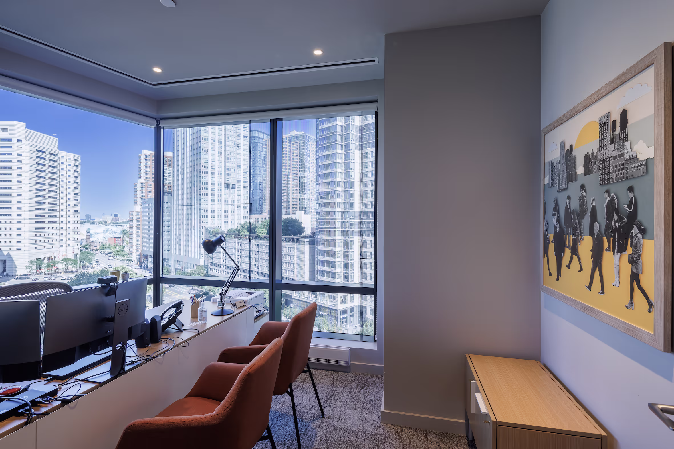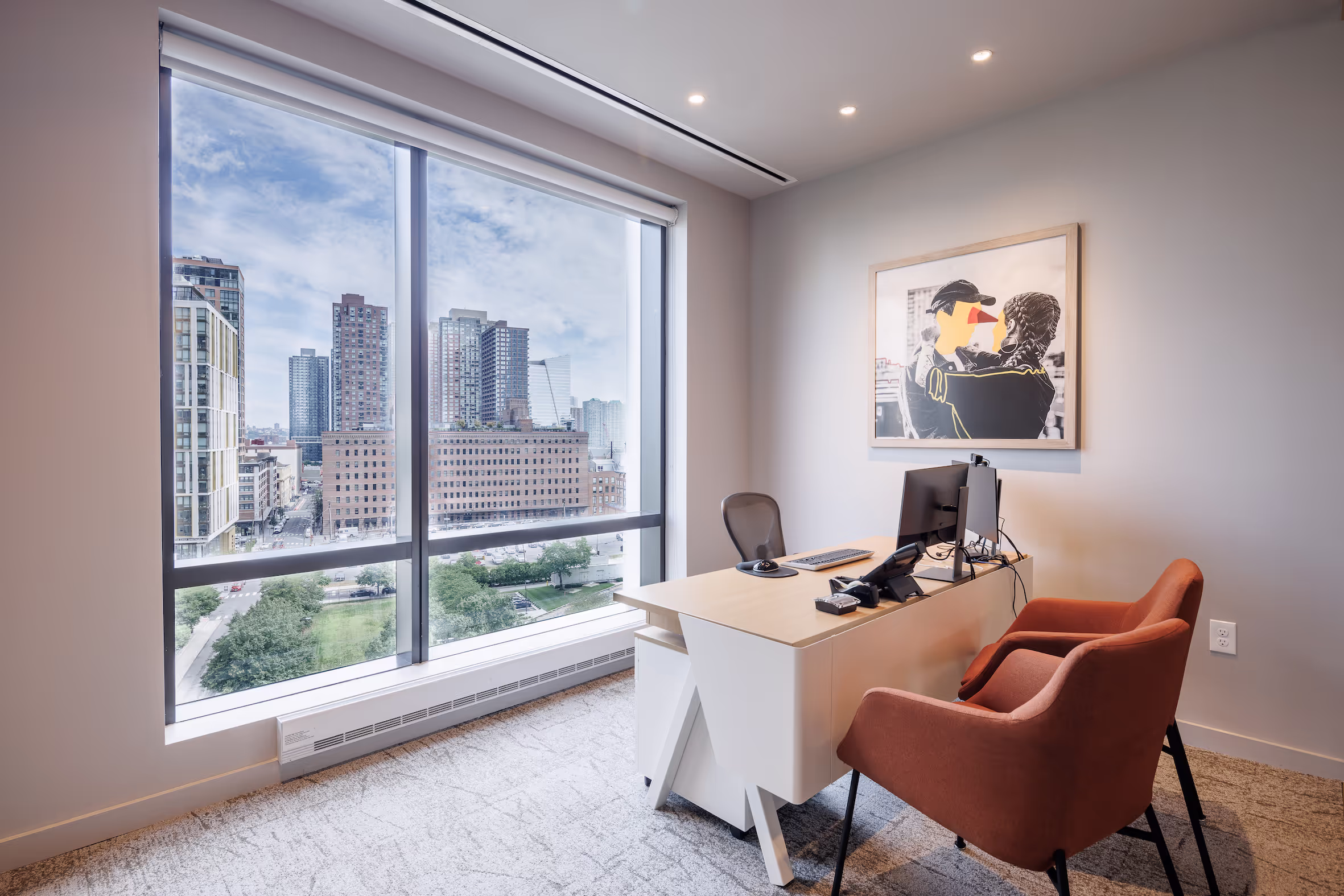 The art program at Haus 25 is an absolute reflection of New Jersey itself, embodying the state's unique blend of bucolic and bustling energy, charm, and culture. The art collection is carefully curated from scores of talented artists, capturing the very essence of the city's eclectic vibe and infusing the space with an undeniable sense of comfort and familiarity. Just like the vibrant community it serves, Haus 25's art collection is incredibly diverse, featuring an impressive range of mediums including photography, mixed media, paintings, textile art, and site-specific sculpture.