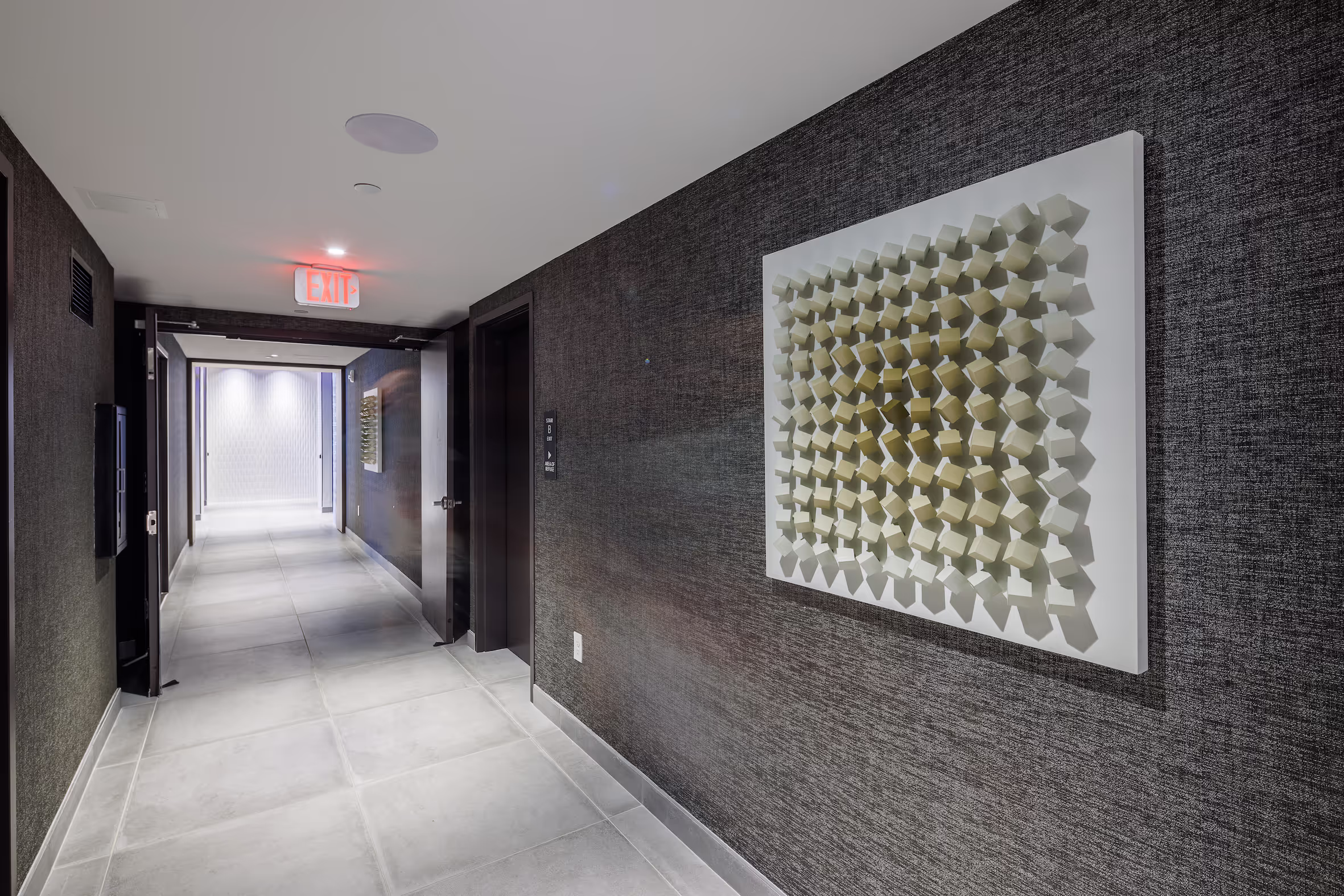 Indiewalls curated a diverse range of materials, styles, and mediums in the Haus25 art collection, which was crucial for creating a dynamic and engaging visual experience that captures the attention of residents and their guests, and enhances the overall aesthetic appeal of the space.