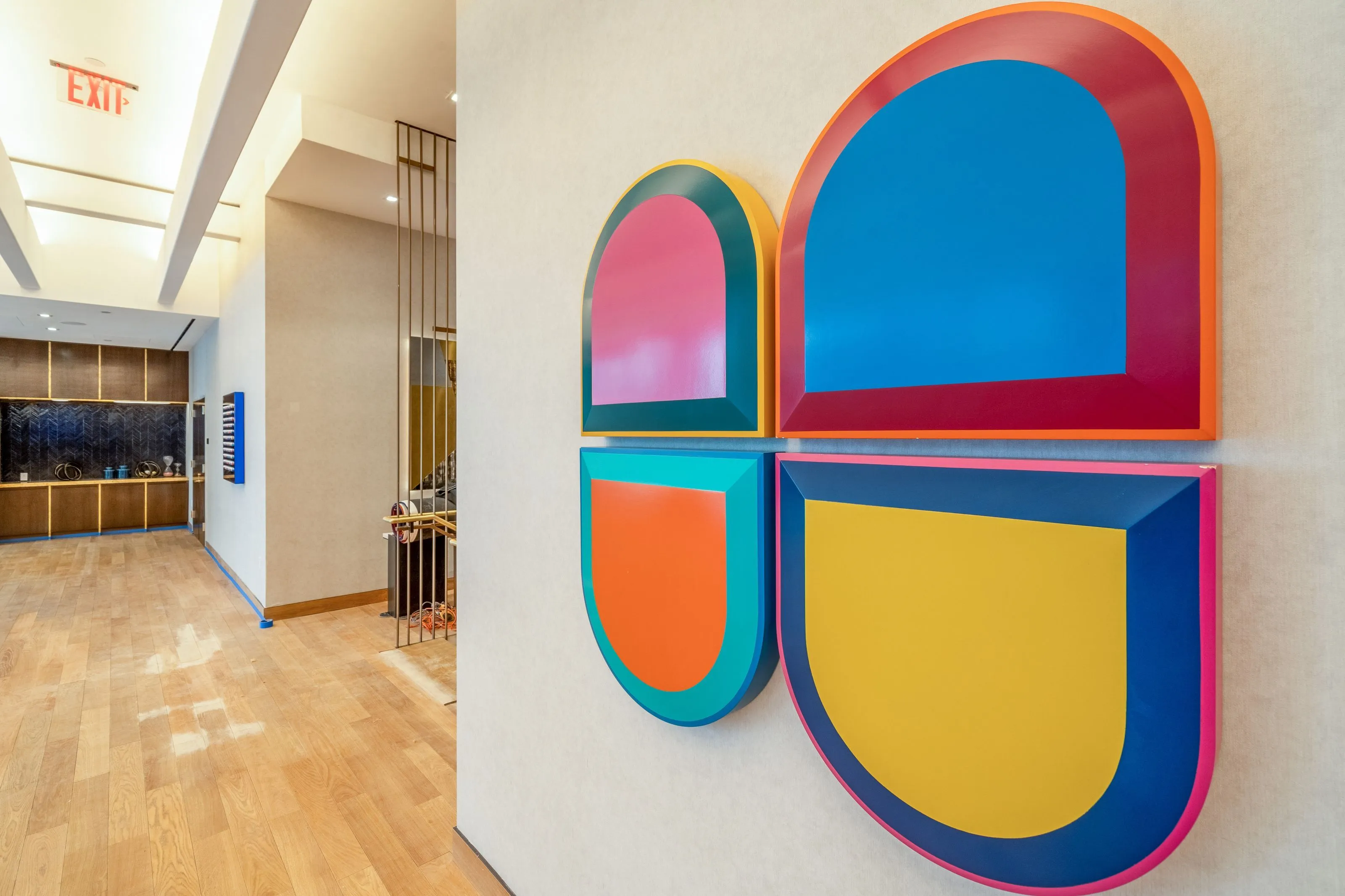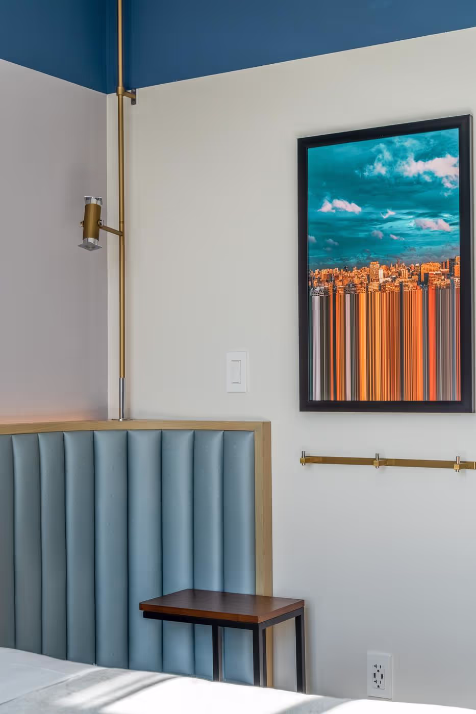 Working with Stonehill Taylor, Indiewalls curated the artwork for Motto by Hilton Chelsea New York City. Coincidentally situated on 24th street near 7th Ave, the hotel's aesthetic celebrates the 24/7 life of the New Yorker through tongue in cheek references to pills by Hilt Projects, abstract depictions of transience by Diego Kuffer, and cyclical representations of Night & Day by Fong Qi Wei.