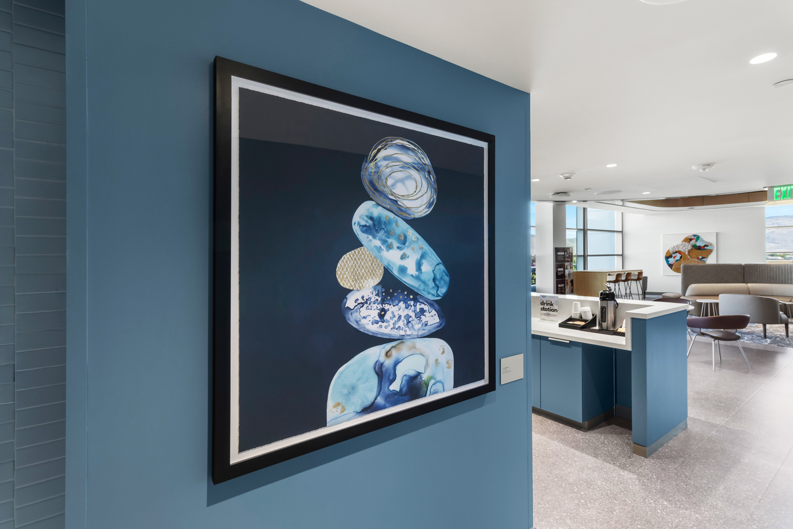 At Renown Healthcare, art supports the healing journey from the moment visitors arrive. Across waiting rooms, corridors, and nursing zones, the collection was curated to reduce anxiety and restore focus through subtle color and texture. Drawing on natural palettes and woven forms that echo the surrounding Sierra Nevada landscape, each piece offers a moment of stillness between waiting times.