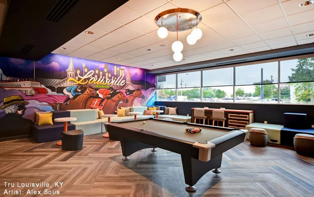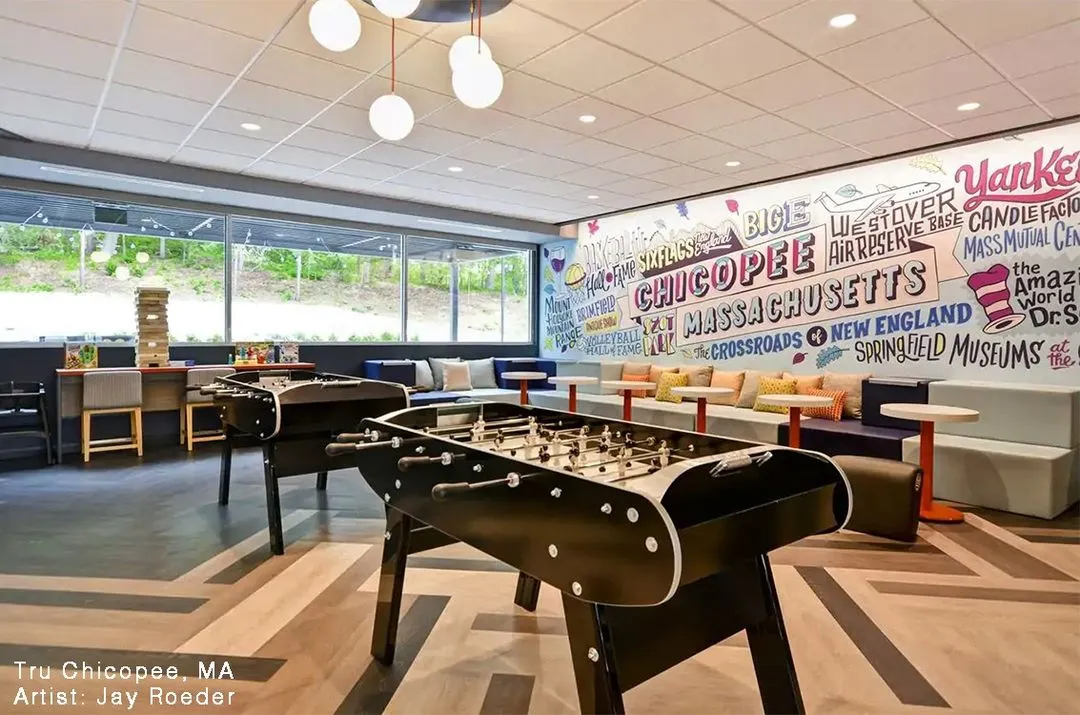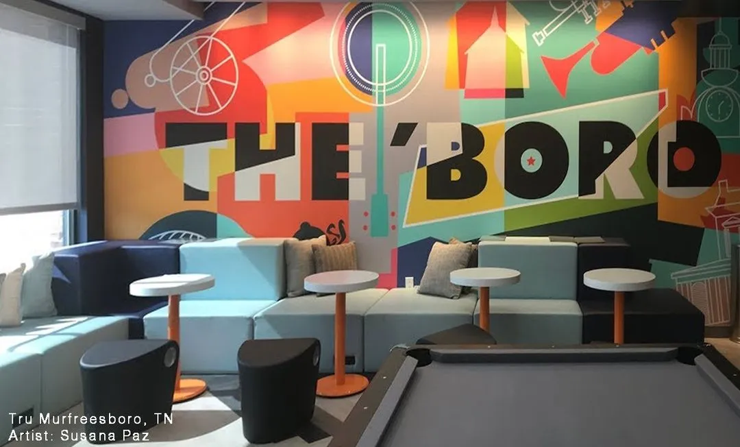 Tru by Hilton is Hilton’s latest, fastest growing hotel brand. To facilitate the rollout of more than 300+ hotels in the next 2-3 years, Hilton partnered with Indiewalls to create a custom, local mural for each property. Below is a selection of some of our favorite Tru murals so far.