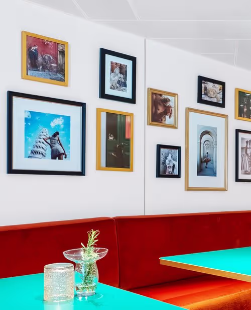 For this Italian restaurant onboard Virgin Voyages’ Scarlet Lady cruise ship, Indiewalls curated salon-style wall art for a modern take on traditional Italian design and aesthetic. From images of Roman fountains and Venetian vistas, to black and white portraits of everyday Italian life, the artwork at Extra Virgin vibrantly evokes ‘La Dolce Vita.’