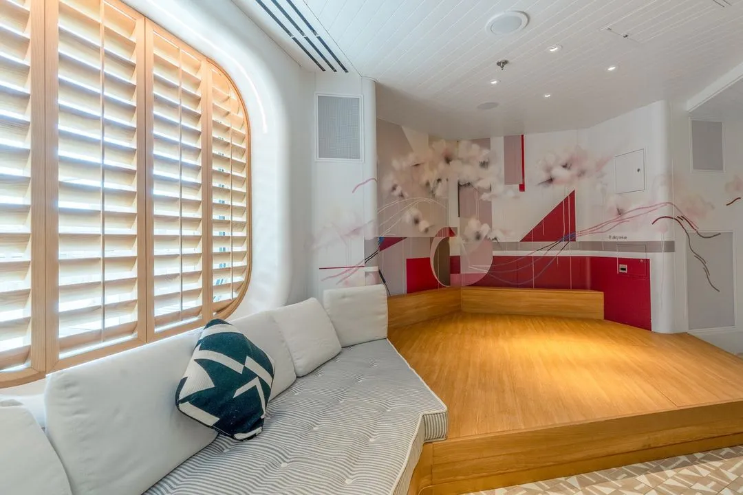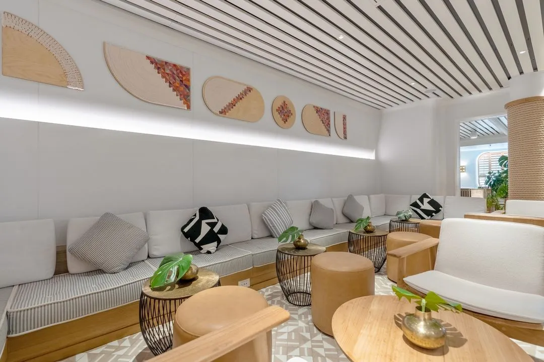 Virgin Voyages' inaugural ship the Scarlet Lady has an art collection fit for a royal mermaid. Curated artwork featured in the Dockhouse, an elegant Mediterranean eatery. Get a behind-the-scenes look at the making of Leah Pantéa's ethereal mural and Nosheen Iqbal's vibrant artworks that blur the line between sculpture and textile art.