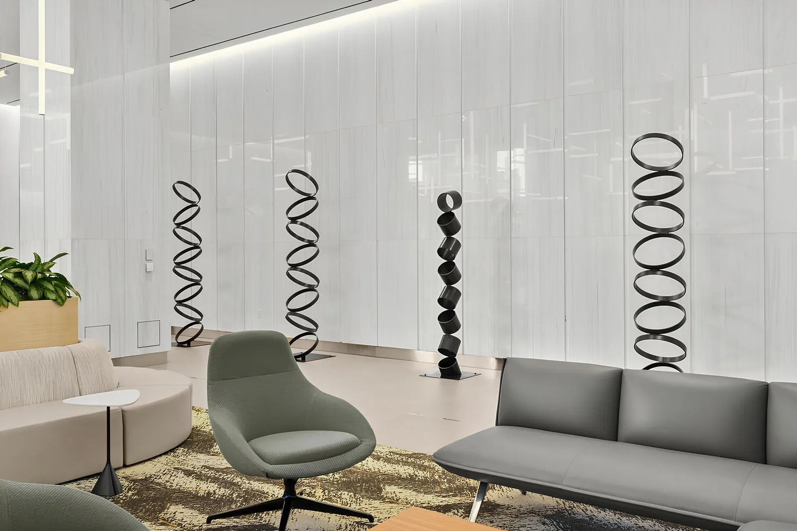 The buildings sit atop the Long Island Sound, so a special collection, inspired by the Sound, was curated for the executive floors.